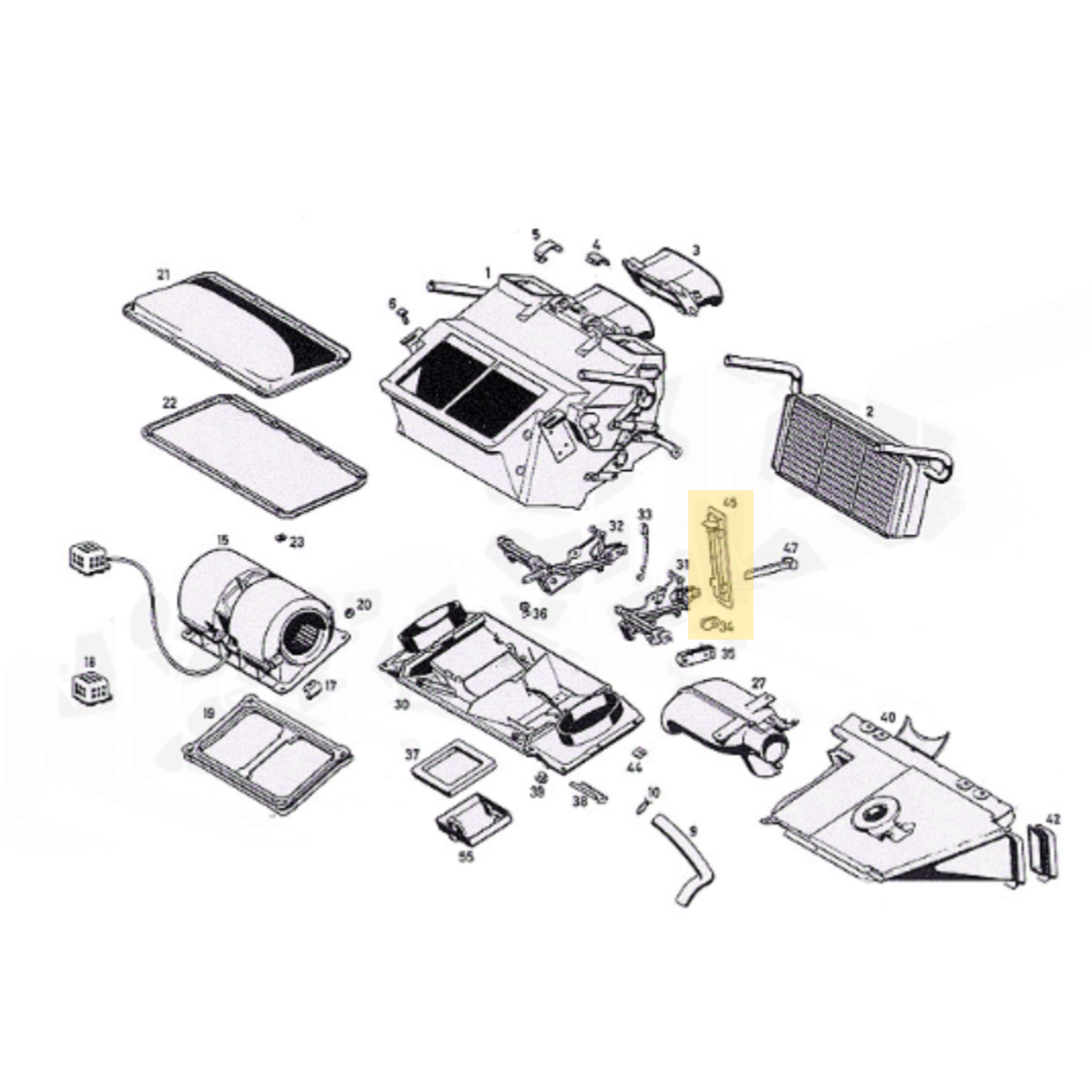 Component for the Mercedes W107 heating/ventilation unit. Ideal for restoration and functional recovery. To check compatibility with your vehicle, we recommend comparing the original part number or contacting us before purchasing.
