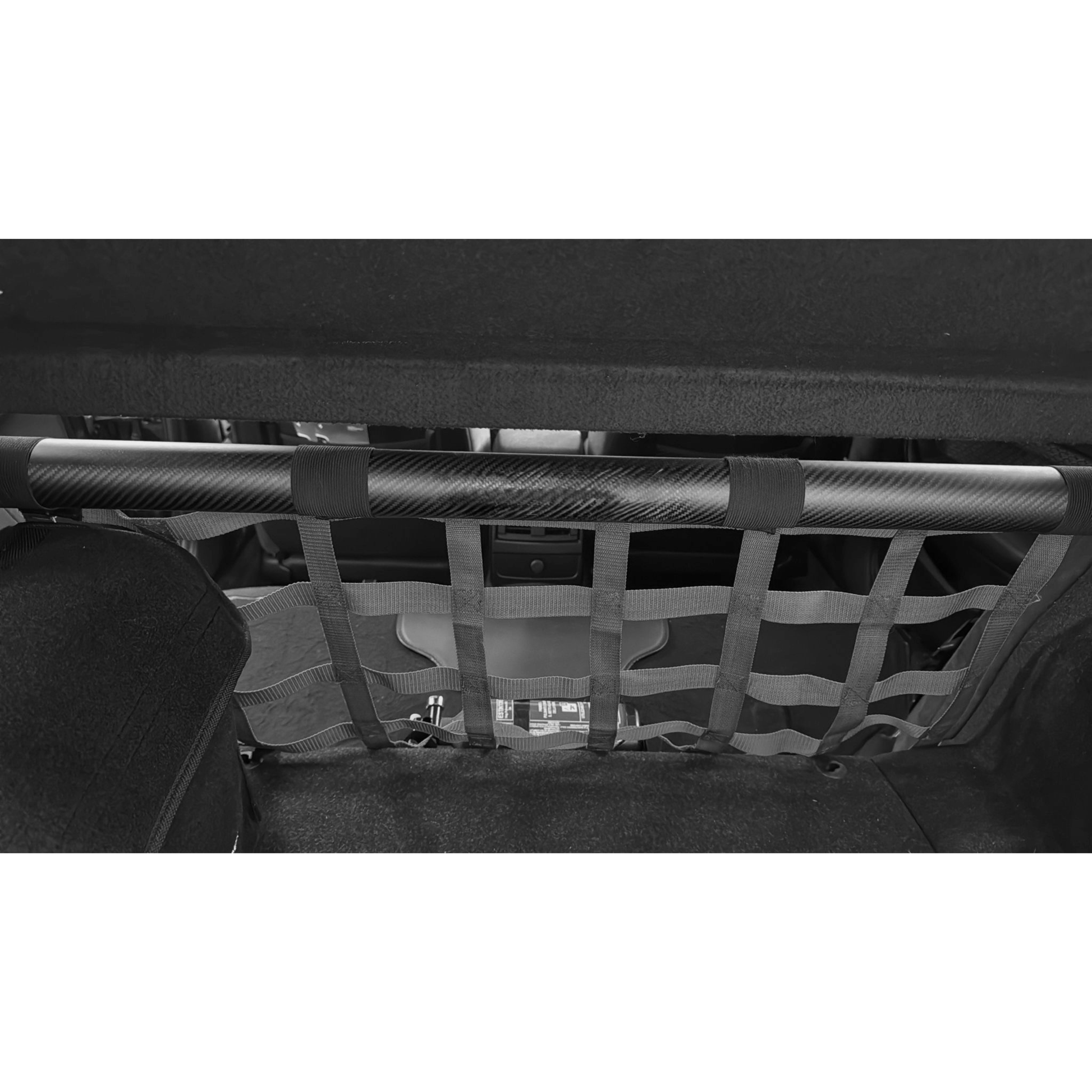 Realizzata con materiali di alta qualità, la rete consente di mantenere l’ordine nel vano posteriore, aggiungendo un tocco estetico personalizzabile. Ogni pezzo è cucito con macchina Singer da una sarta italiana, garanzia di precisione e cura artigianale.